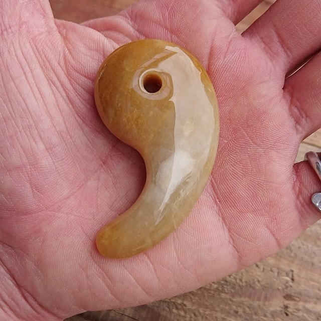 天然石を使用しておりますので、イエロージェイド独特の模様、色の濃淡、等々ございます