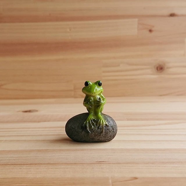 石の上で一人ぼんやりたたずむ蛙