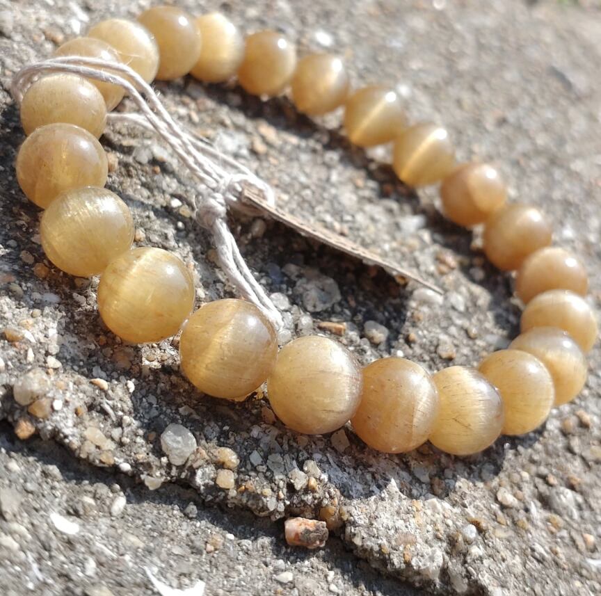 イエローアパタイトキャッツアイのブレスレット