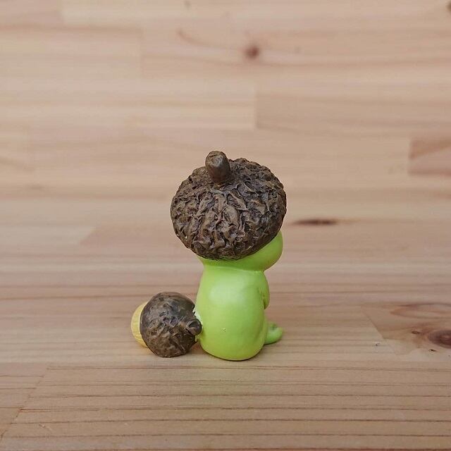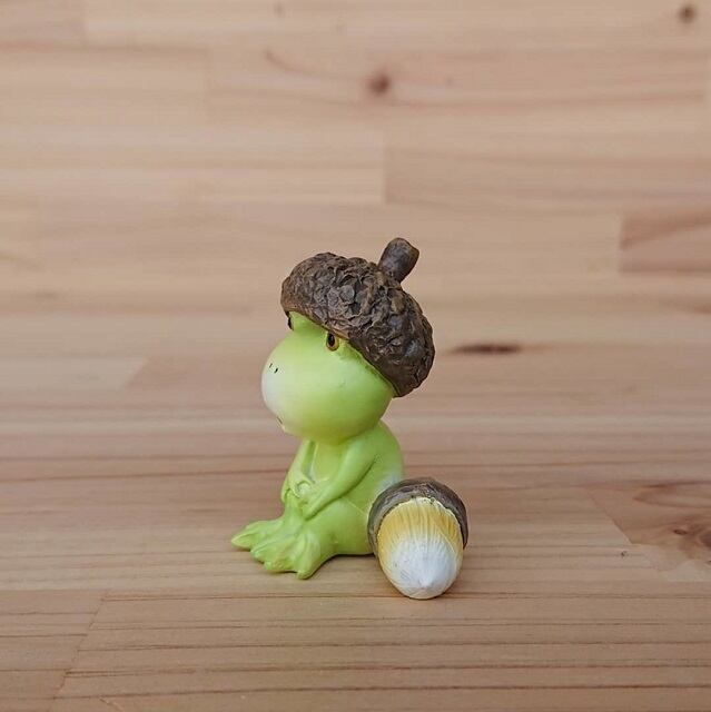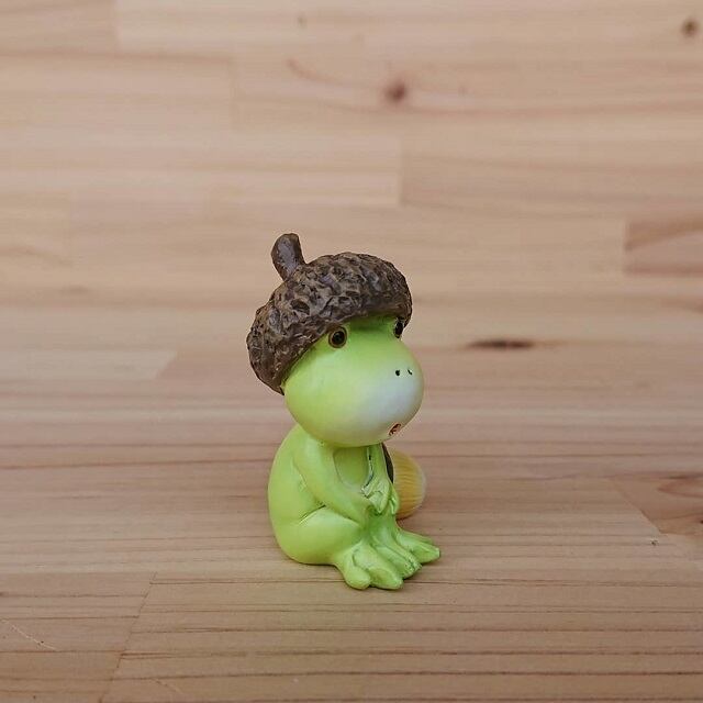 ドングリのかさを、帽子代わりにスッポリかぶった蛙