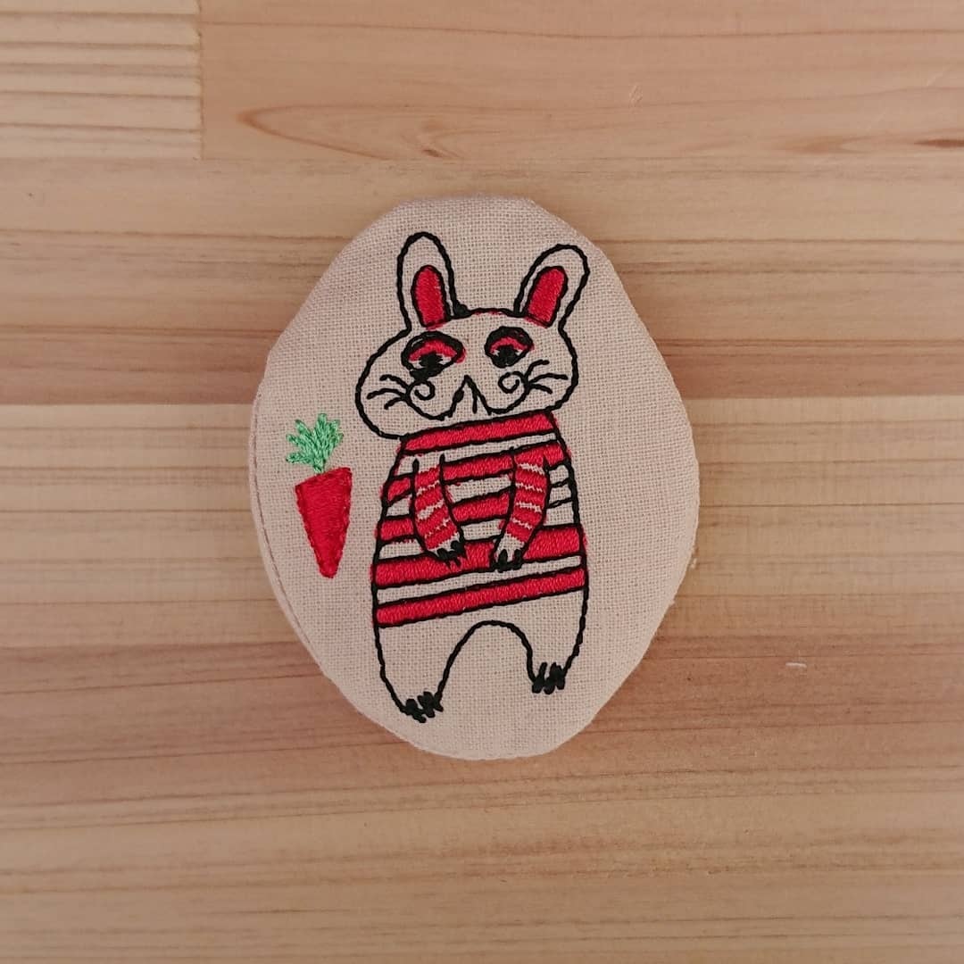 ボーダーの長Tに何とも言えない表情がどこか憎めない『ボーダーうさぎ』ブローチ