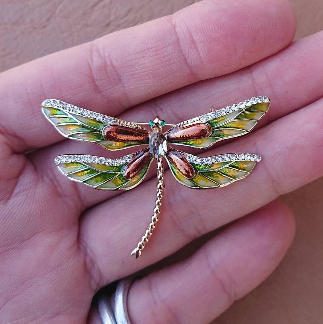 キラキラ エナメル七宝のブローチ トンボ イエロー