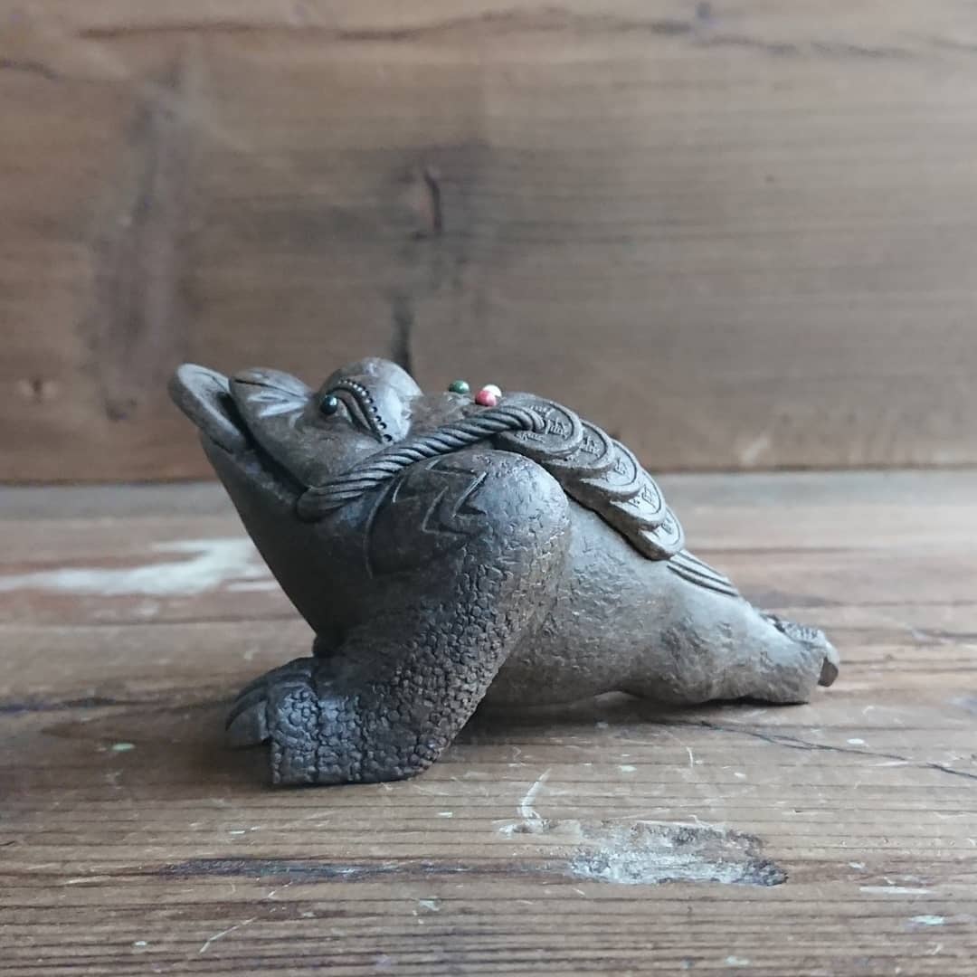 中国古来からの縁起物で、口にお金を咥えた三本足の蛙