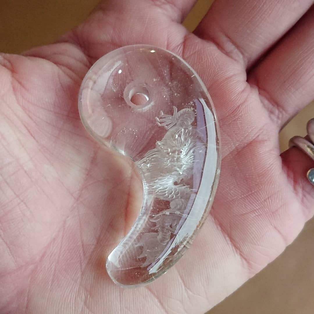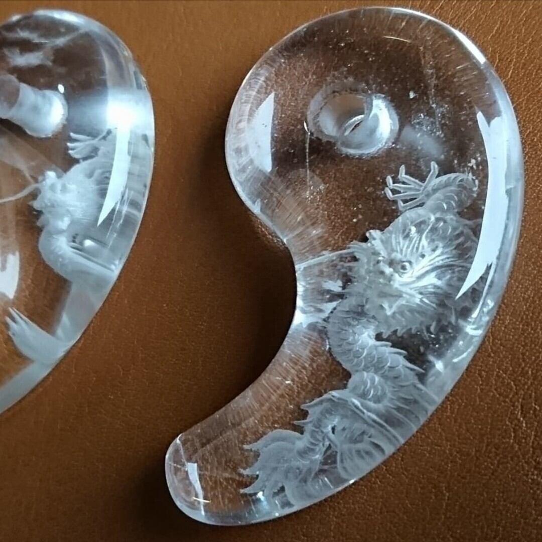 天然水晶に、手彫りで『龍』を一つ一つ丁寧に彫り込んでおりますので、一つとして同じ物が無く、それぞれがオンリーワンとなります