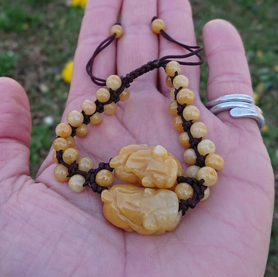 #0124 イエロージェイド 伝説の神獣 貔貅(ひきゅう)ペアブレスレット