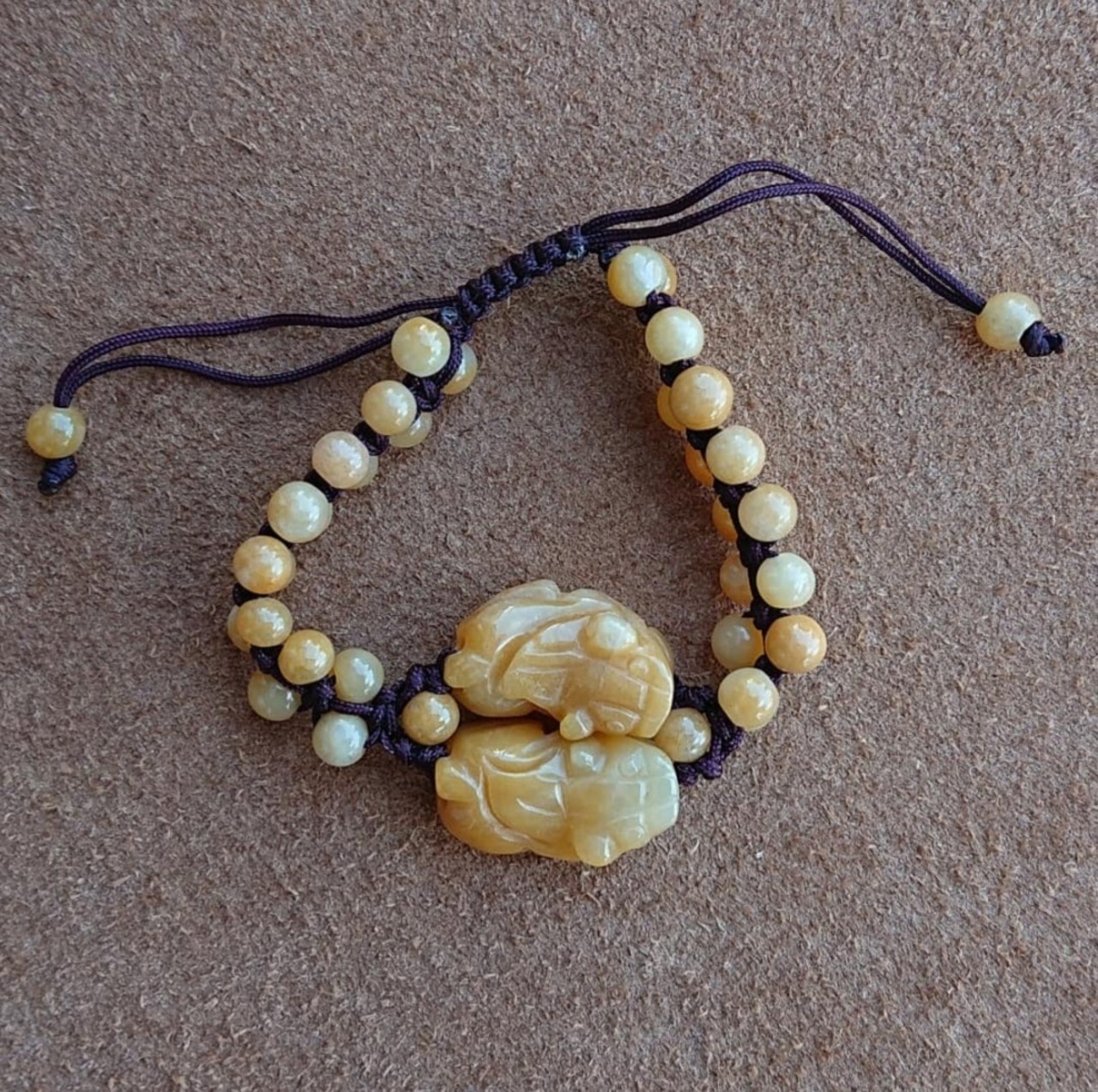 こちら、イエロージェイドの貔貅(ひきゅう)のペアブレスレットとなっております。