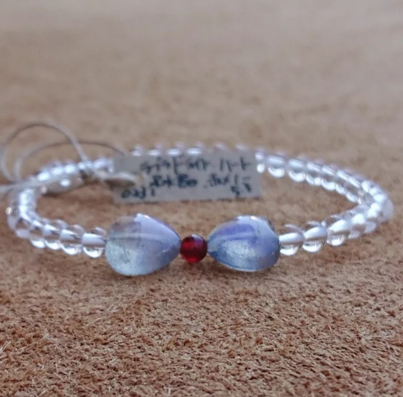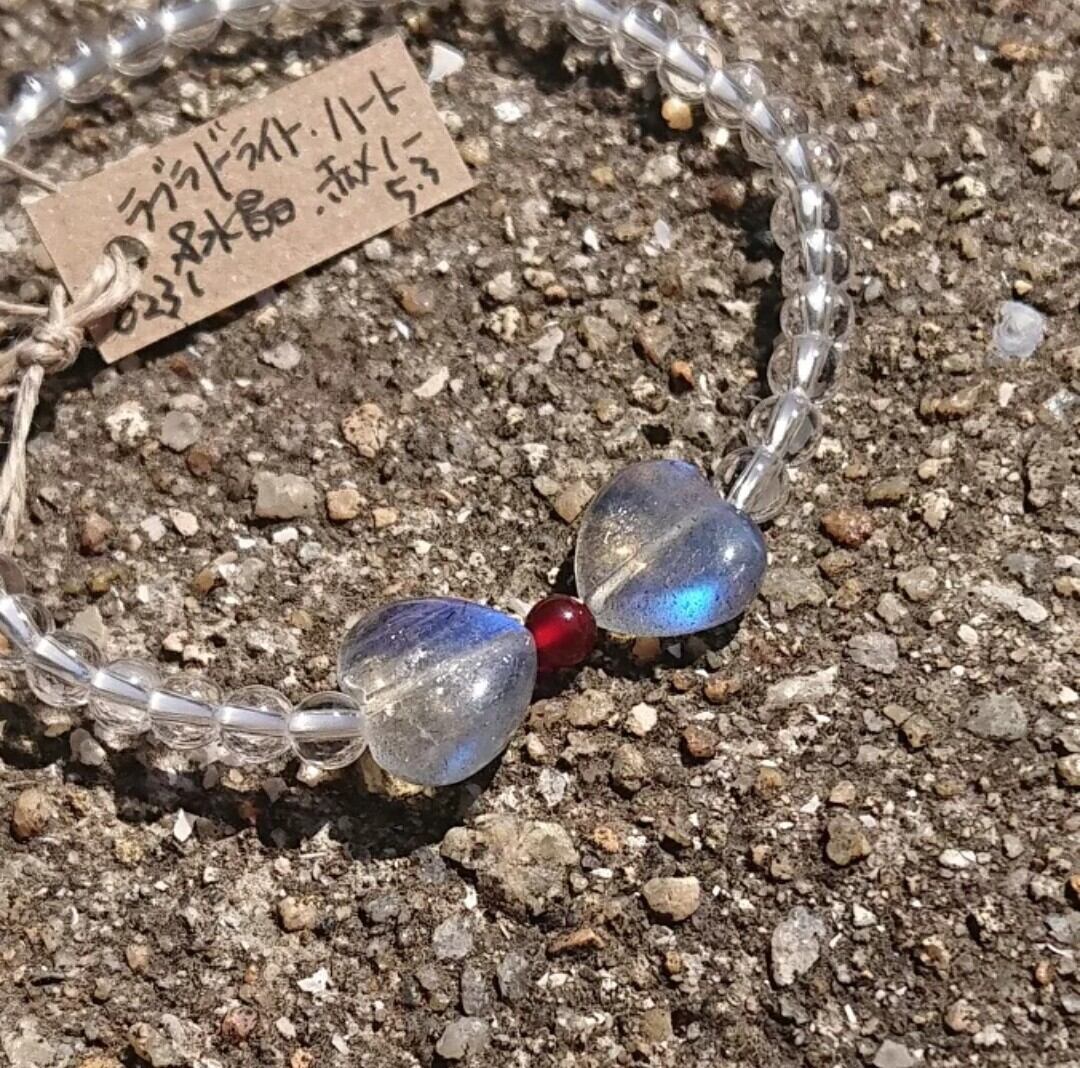 #0231 マダガスカル産 ラブラドライト ハート ブレスレット リボン