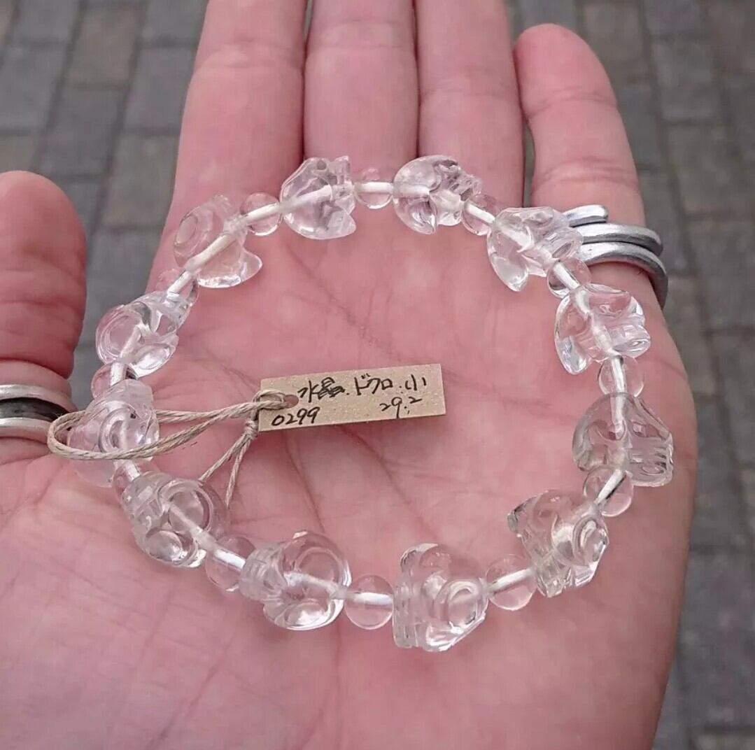 水晶にドクロを立体的に彫り込んだビーズと