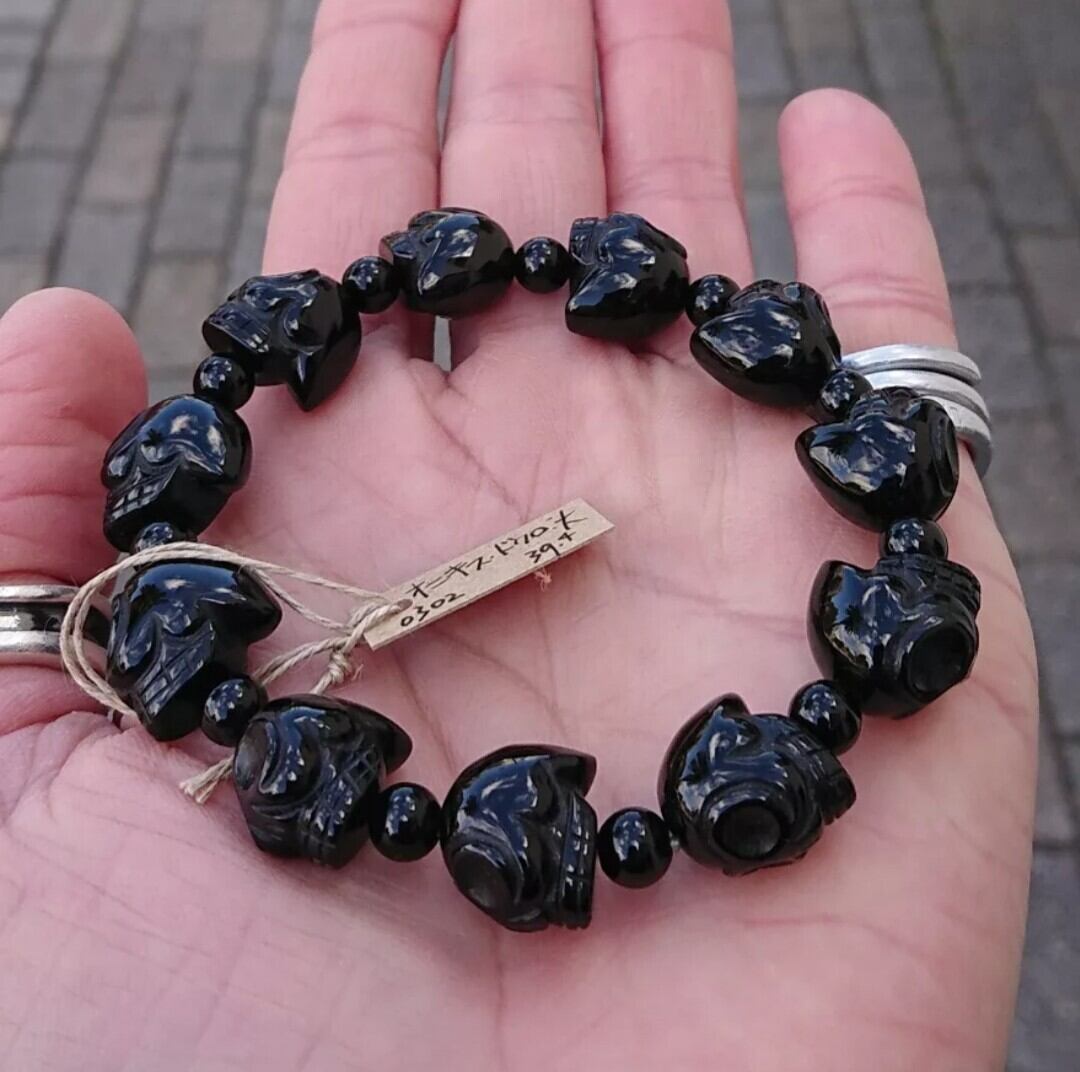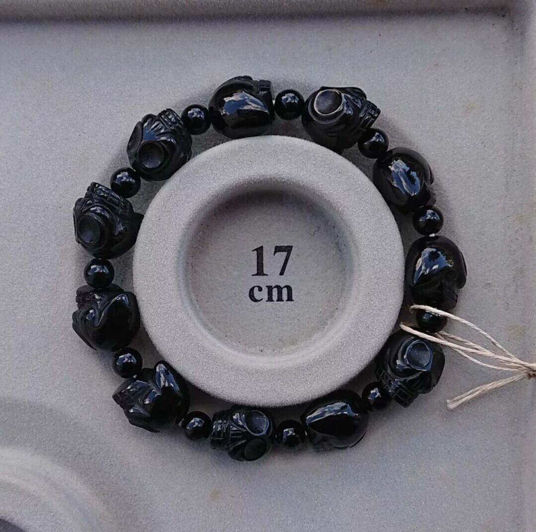#0302 MIXブレスレット ドクロ彫りオニキス&ラウンドオニキス L