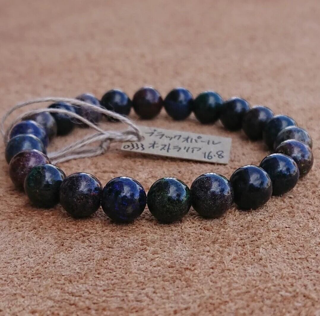 【送料無料】 #0333 ブレスレット ブラックオパール 9mm