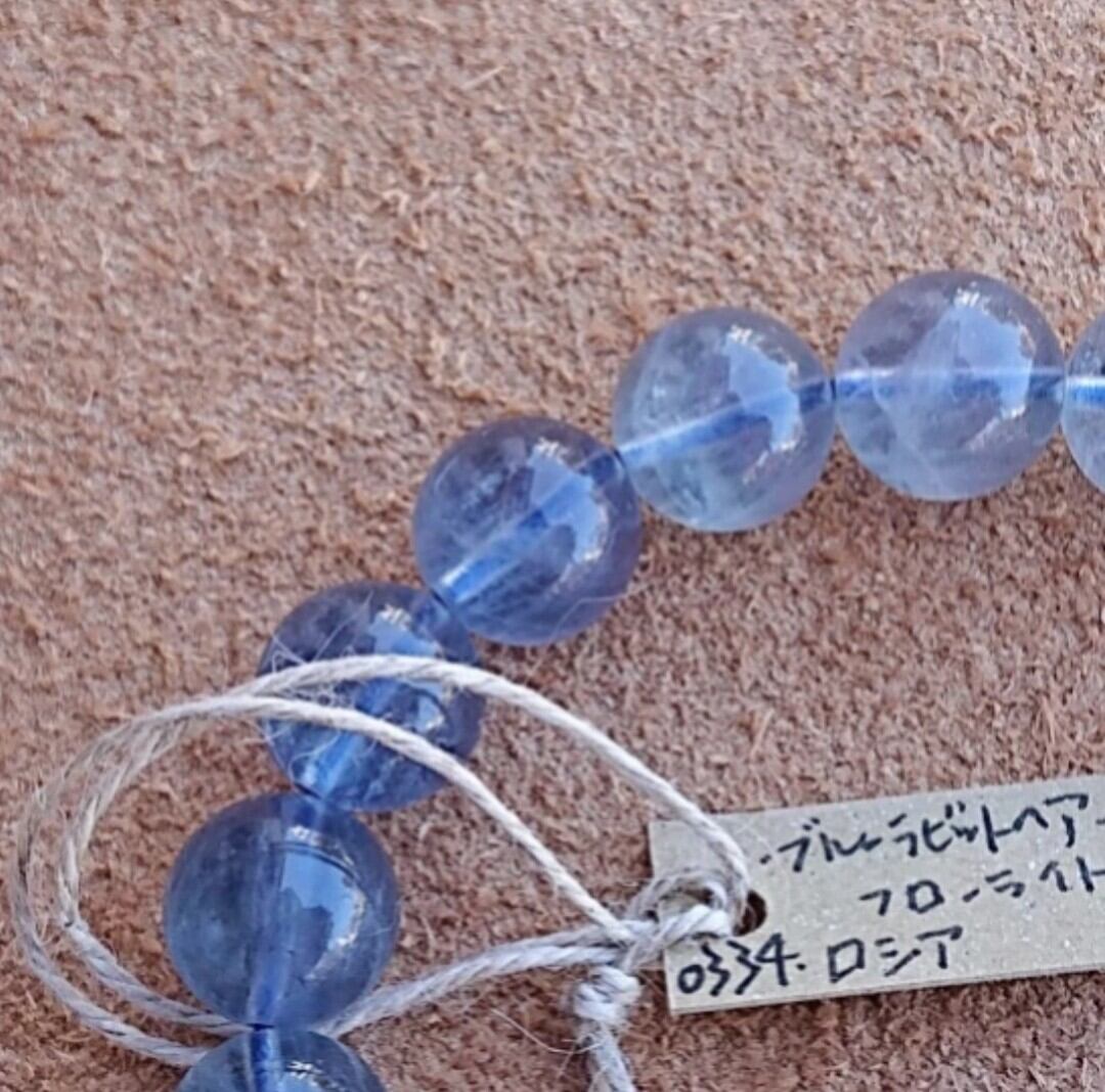 #0334 ブレスレット ブルーラビットヘアーフローライト 10mm